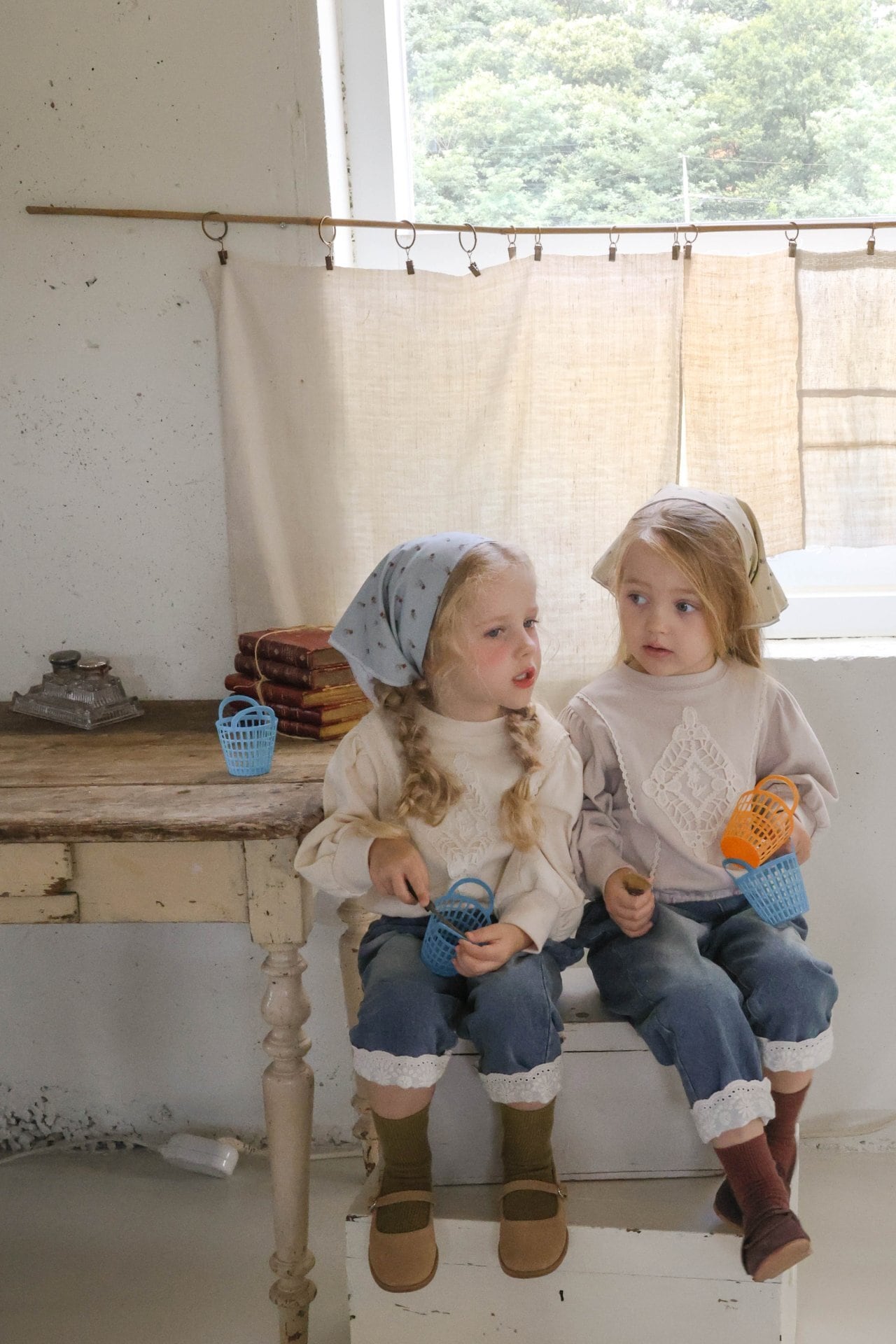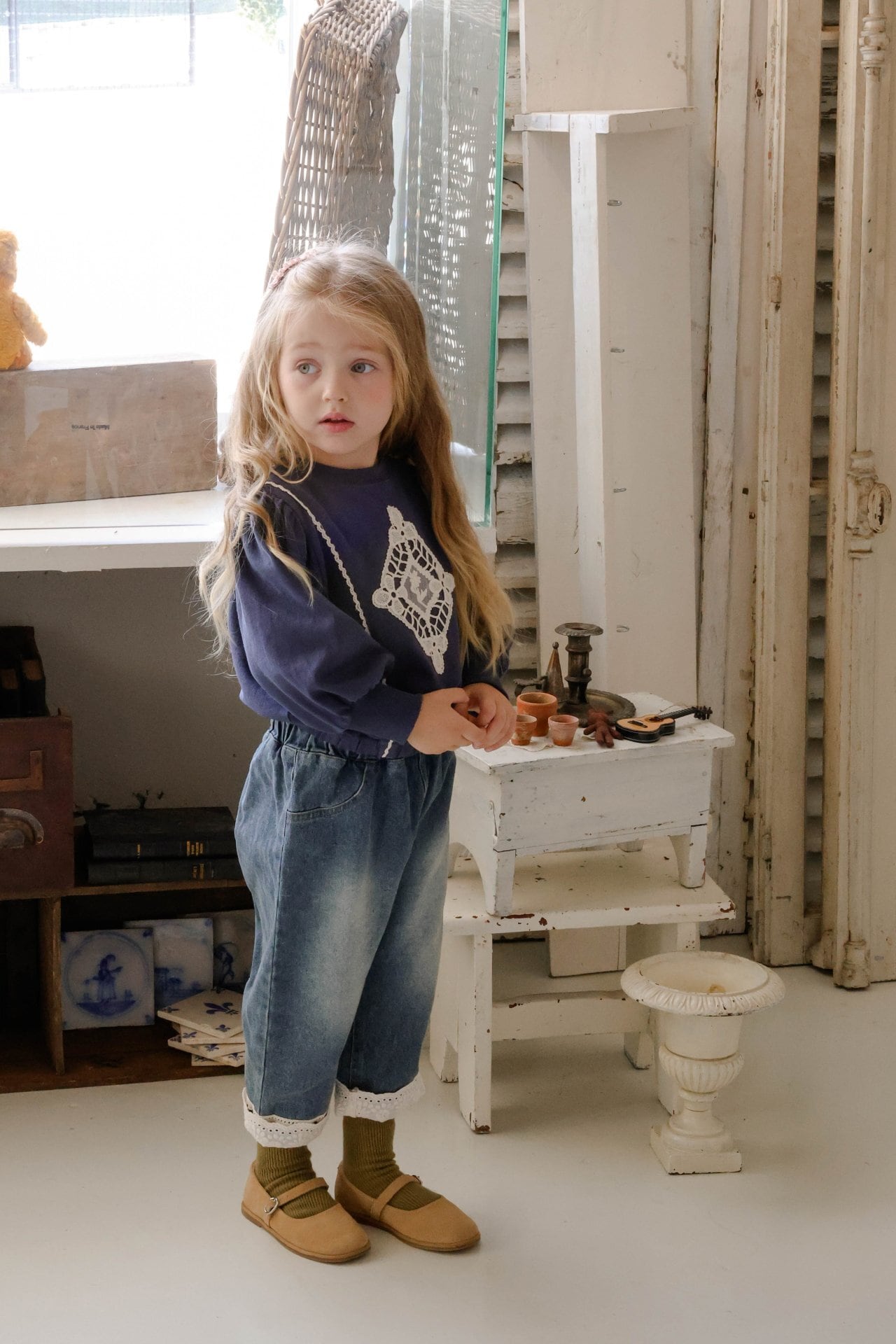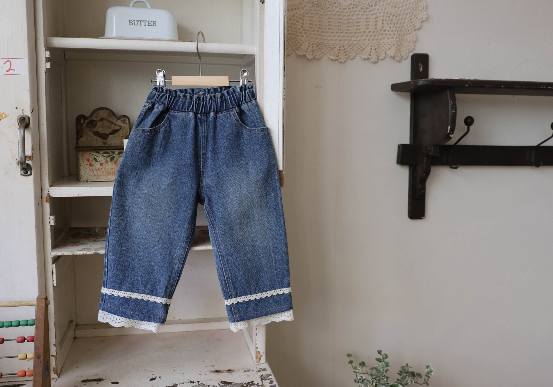 即納◆100-110 折り返しレースデニム-FLO