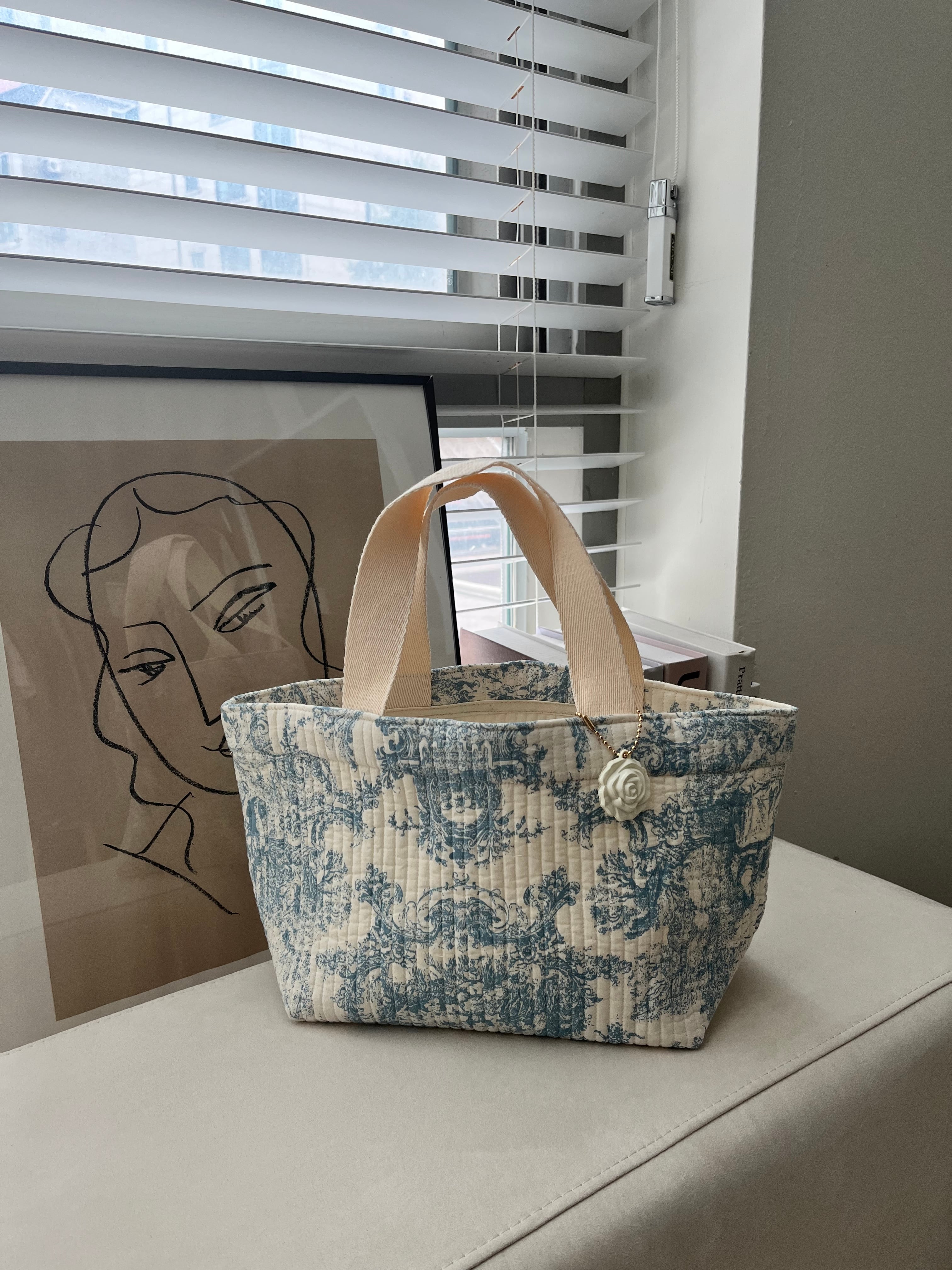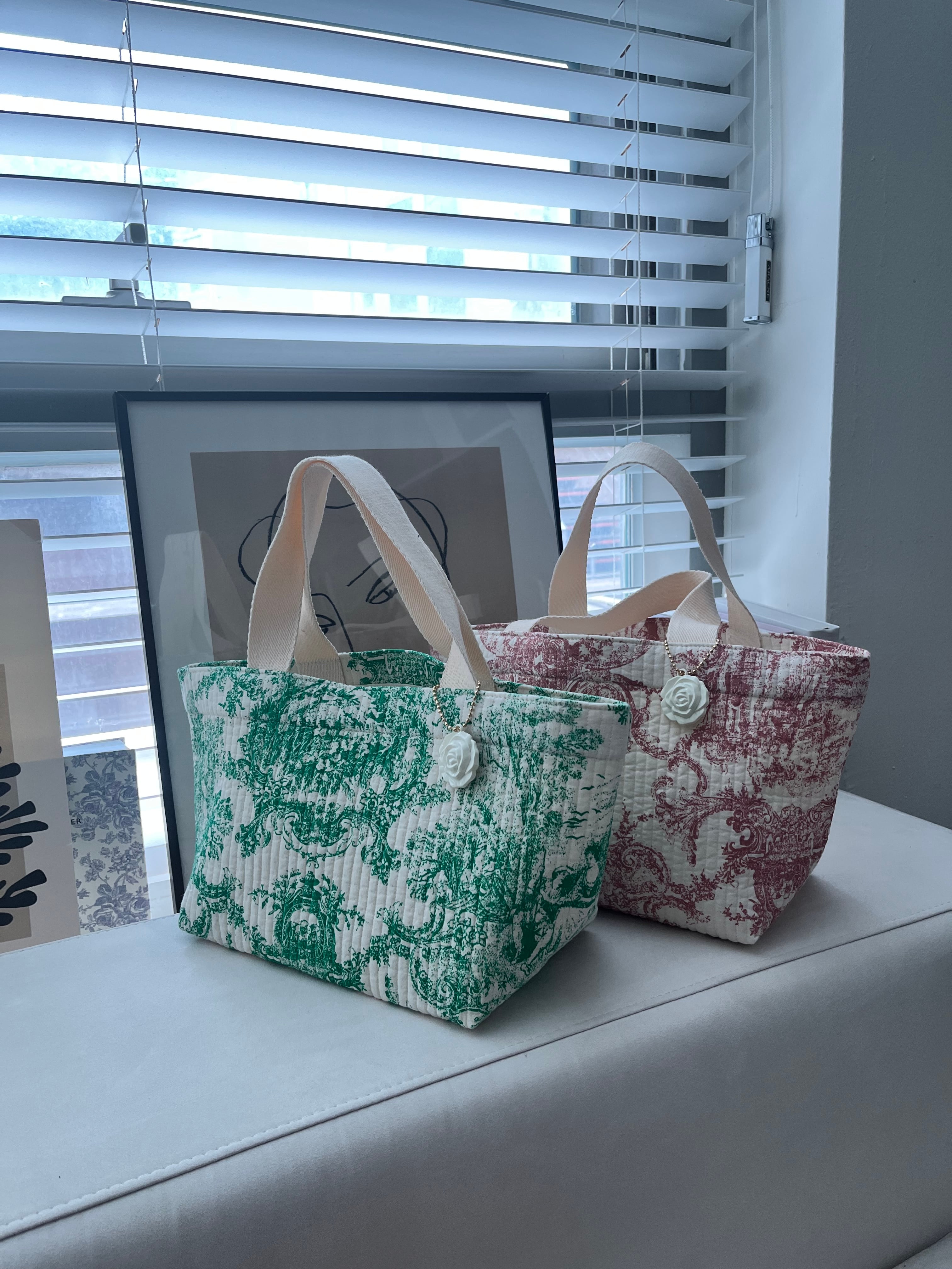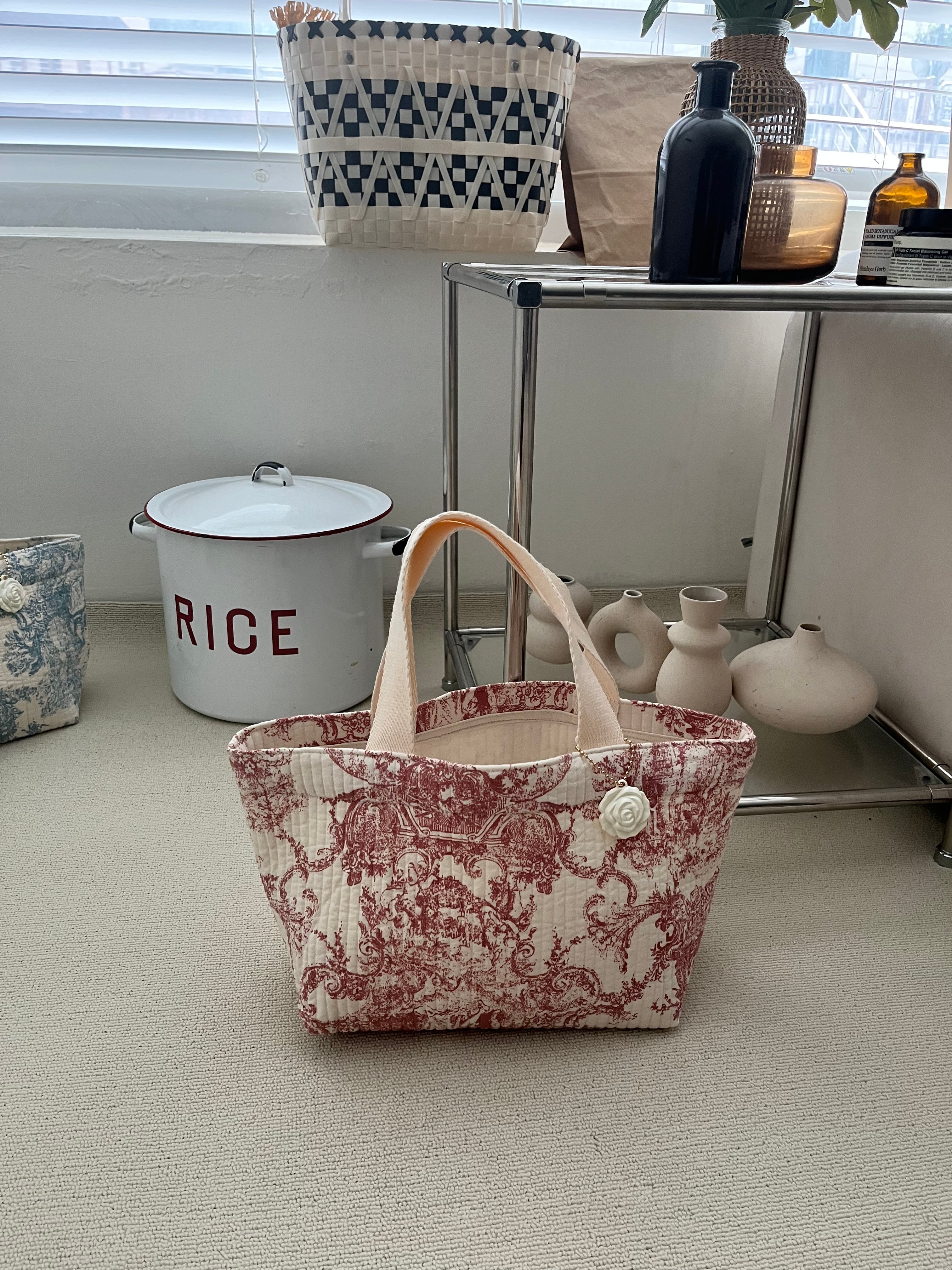 ヨーロッパ風のガーデンパターンがかわいいヌビ(キルティング)のトートバッグです。