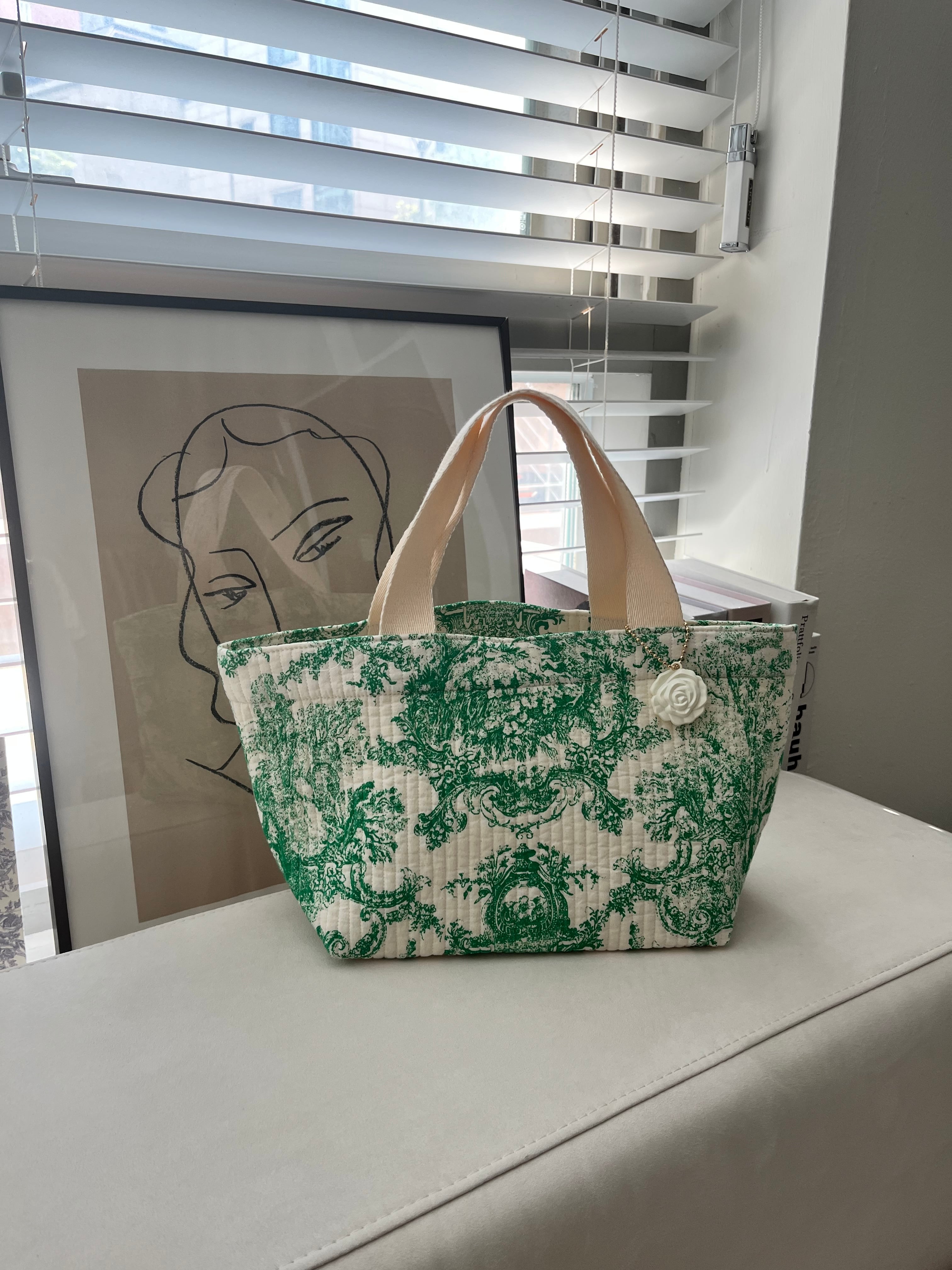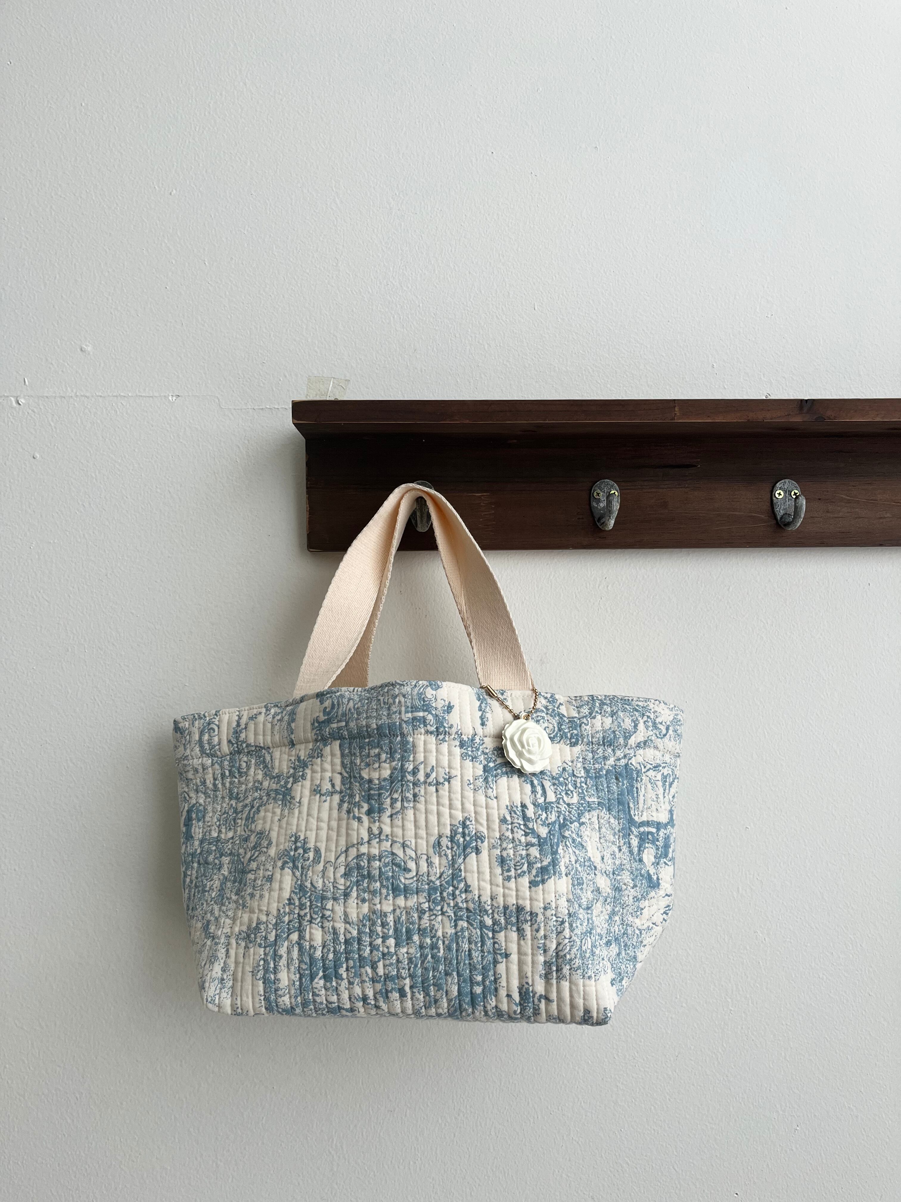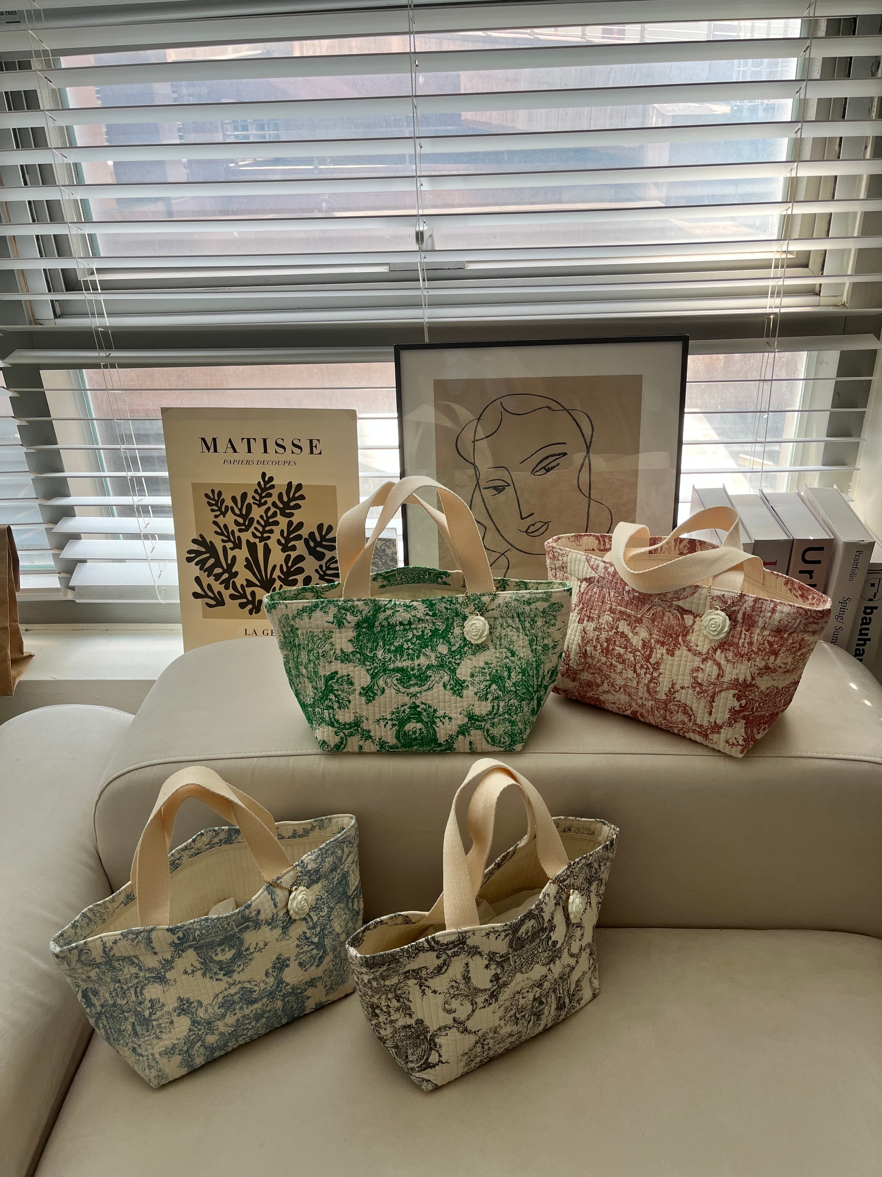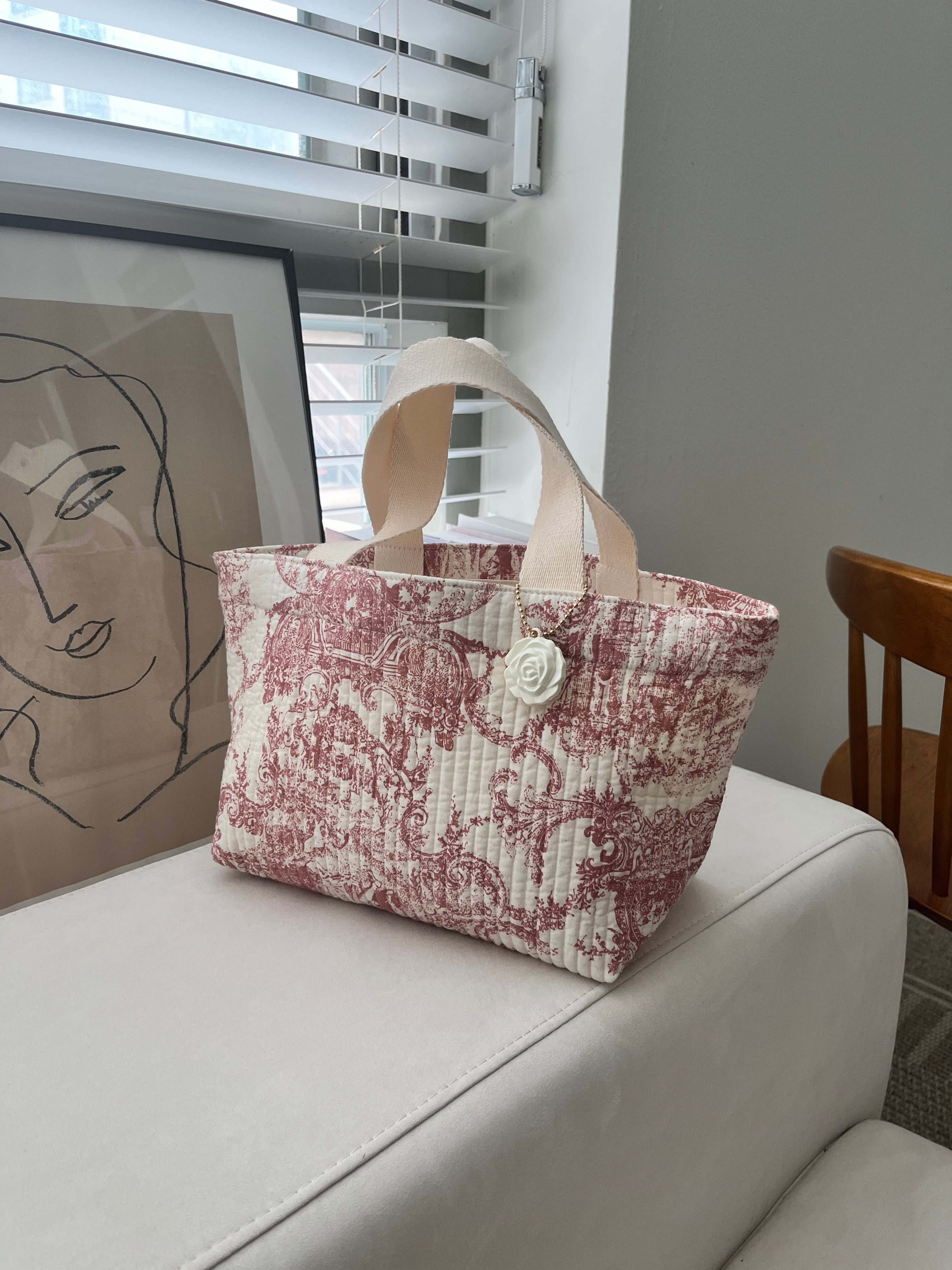 ヨーロッパ風のガーデンパターンがかわいいヌビ(キルティング)のトートバッグです。