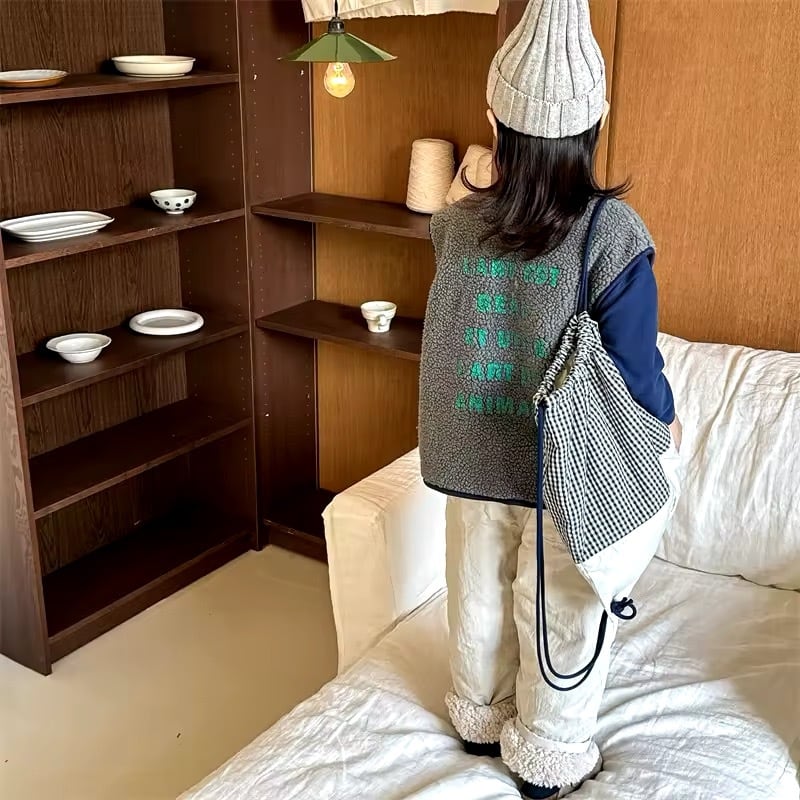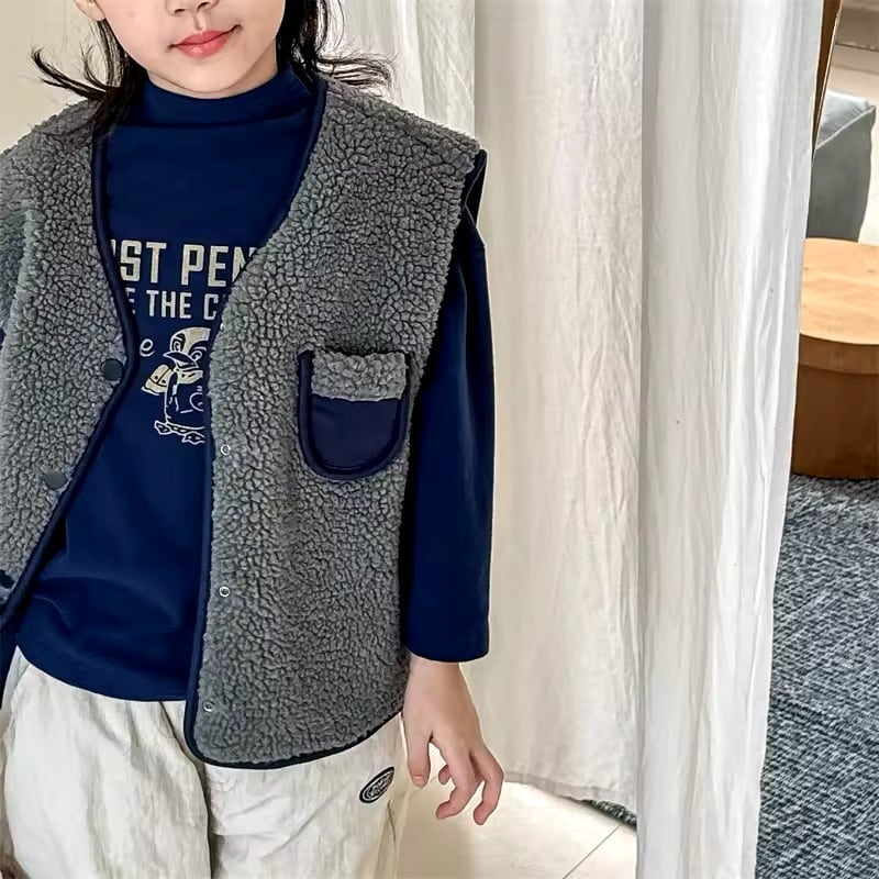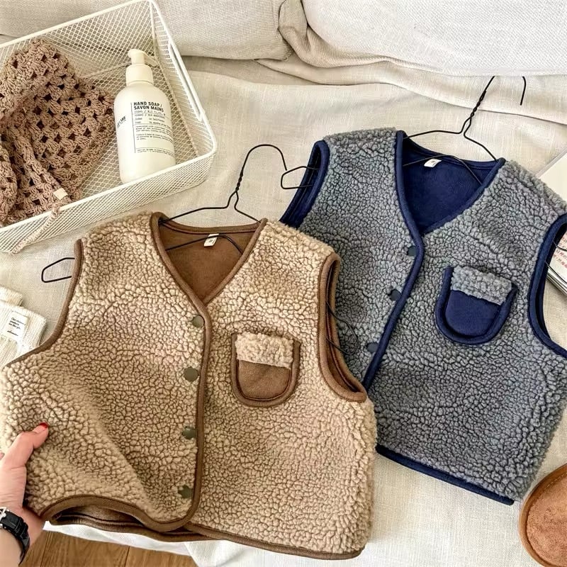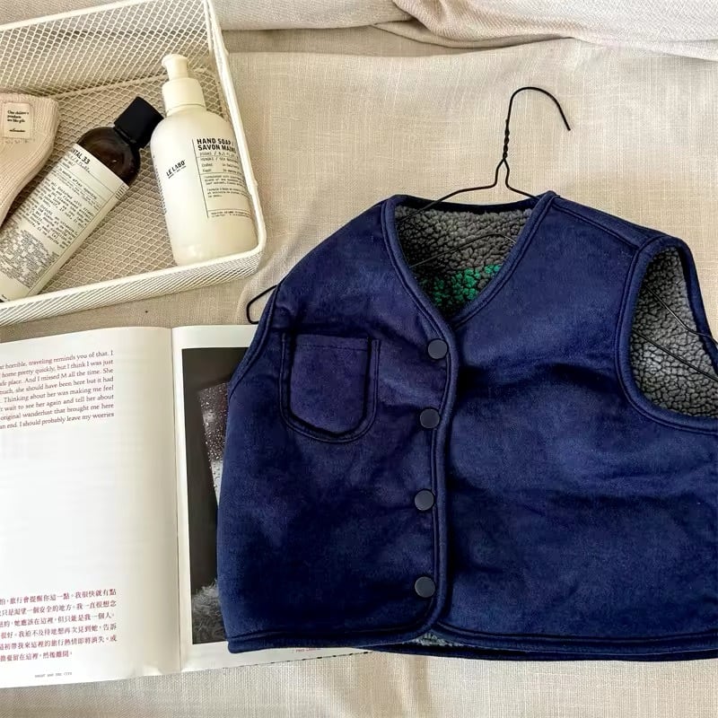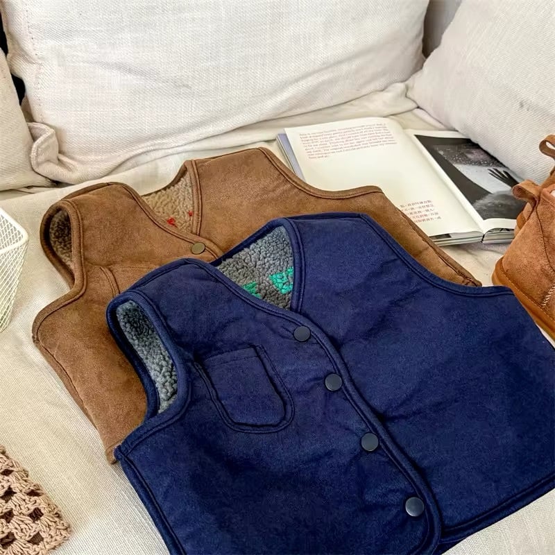 片面がスエード調の生地になっているから裏表で雰囲気がガラリと変わるボアベスト。