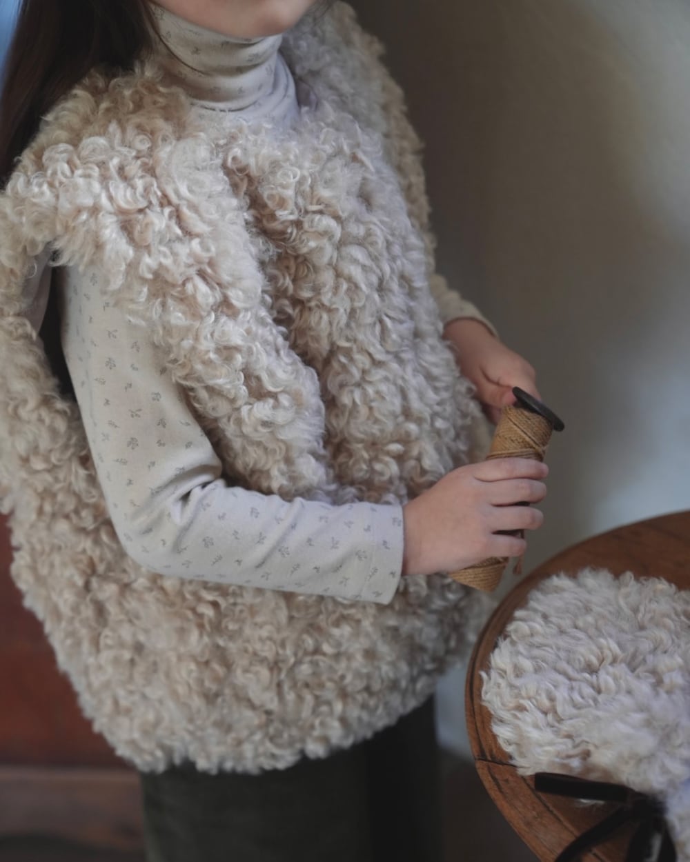 ふわふわくるりんとした毛並みがかわいいベストです。春先の少し肌寒い時にも羽織として着られます♥